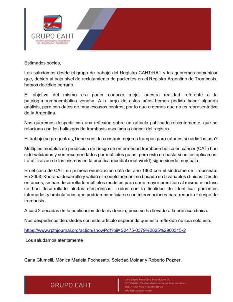 Invitamos a todos los socios interesados a sumarse a esta propuesta enviando un mail a: registrocaht-rat@grupocaht.com